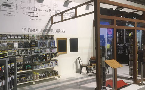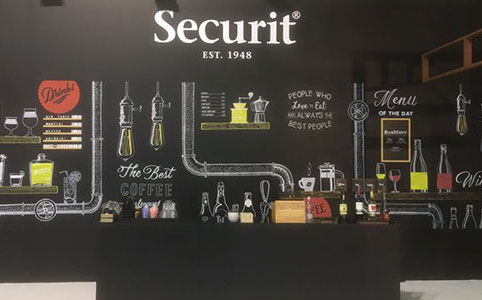 Een van de stands in 2017 voor het merk Securit®. Tijdens deze show in Milaan moesten meerdere onderdelen tot hun recht komen voor o.a. inkopers van groothandels en ketens in de horeca. De uitdaging lag in het feit om de tussenhandel en eindgebruiker een goed beeld van het assortiment te geven. Bij dit ontwerp is de stand visueel gesplitst in twee delen d.m.v. twee entrees. De splitsing is versterkt door gebruik te maken van een zwarte en witte achtergrond. Het deel met de zwarte achterwand, het restaurant, is beschreven met krijtstiften. Het deel met de witte achtergrond is de winkel omgeving. Het deel van het restaurant, geeft een beeld hoe de producten gebruikt en ingezet kunnen worden. Het winkel deel geeft de inkopers van groothandels een overzicht van hoe het assortiment er in een stelling uitziet met bijbehorend POS materiaal. Een sterk ontwerp die twee verschillende doelgroepen bediend.